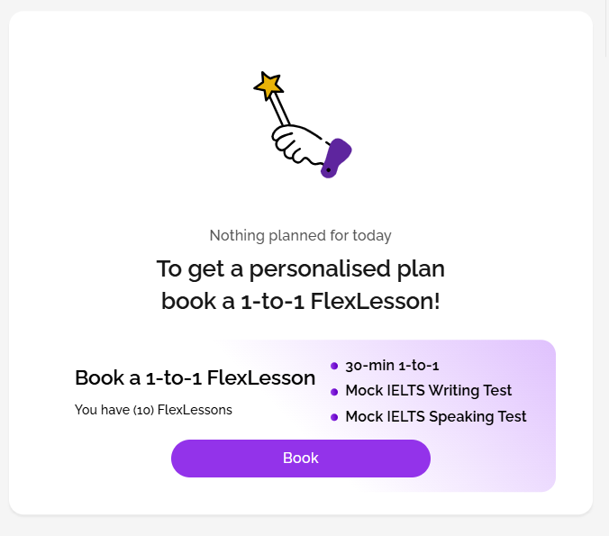 FlexLesson is a 1-to-1 session with an expert IELTS tutor. You can use it to:
